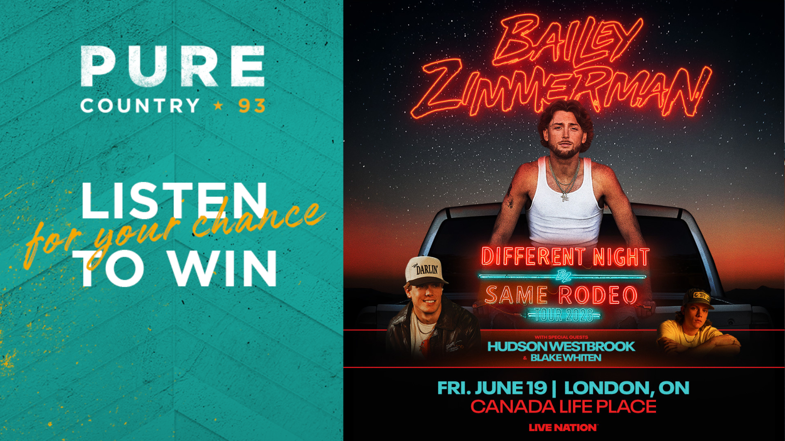 The 2026 Concert Calendar just got it’s next INCREDIBLE addition! BAILEY ZIMMERMAN is bringing the Different Night Same Rodeo Tour to Canada Life Place on Friday, June 19th with special guests Hudson Westbrook and Blake Whiten!