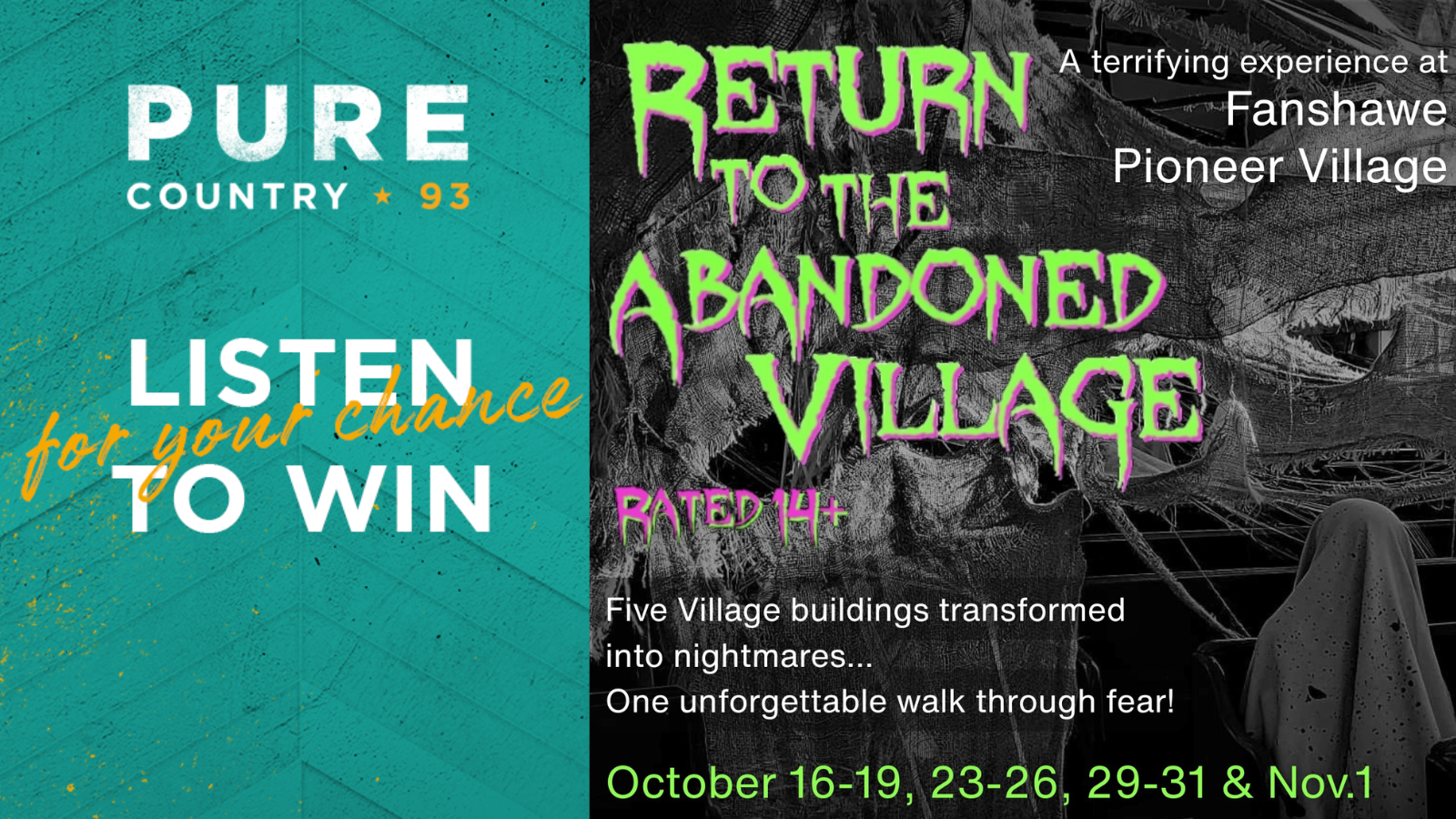 Listen to Weaver every afternoon this week (October 14 – 17) for your chance to win a 4-pack of admission passes for Thursday, October 23rd... if you're not too chicken that is!